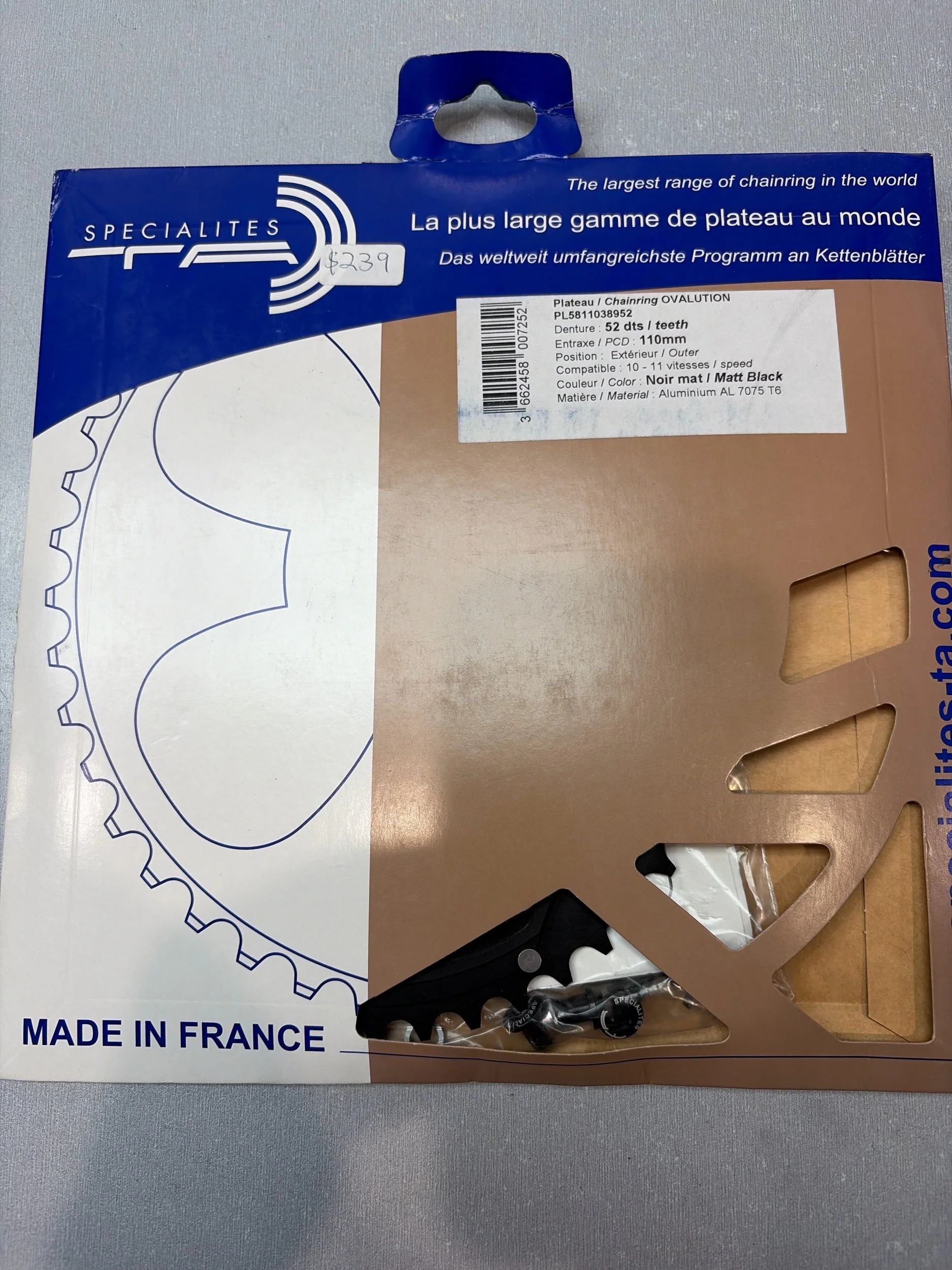 Image 1 of 4 Image 2 of 4 Image 3 of 4 Image 4 of 4 TA Specialites OVALUTION (Oval) 110BCD 52T Chainring Sale Price: $119.99 Original Price: $239.99 Comes with TA special chainring bolts Add To Cart Added! Comes with TA special chainring bolts